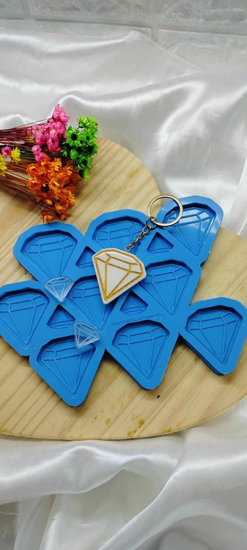 Molde de Silicone - Diamante - 09 Cavidades e 3 Pingentes