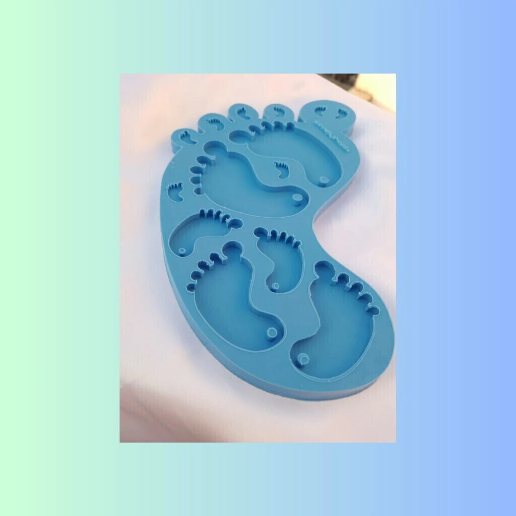 Molde de Silicone Pé com 6 cavidades de 2 Pés maiores e 2 Cavidades de Pé Médios e 2 cavidades de pequenos e 8 Pingentes de pezinhos